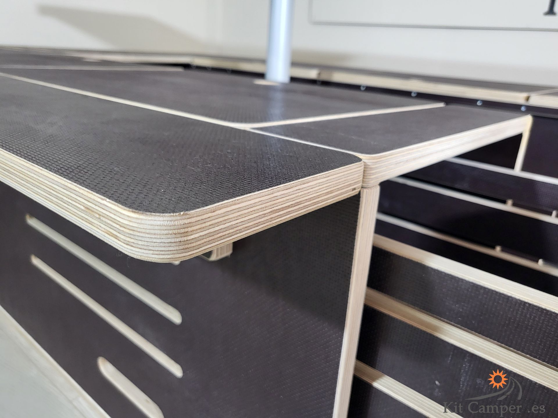 En Kit Camper.es le ofrecemos una amplia gama de Muebles Camper con Cama, Mesa, Cocina, Ducha etc, que adaptamos en medida a su furgoneta.En nuestra colección de Muebles Camper podrá encontrar diferentes opciones para nuestra furgoneta, que en unas nos permitirá mantener los asientos traseros y en otras tendremos que retirarlos .Las ventajas que nos ofrecen nuetros Kit Camper es que no necesitaremos homologación para llevarlo, ya que no haremos ninguna reforma en nuestro vehículo y lo podremos llevar como carga . No necesitaremos retirar los asientos traseros y podremos cargarlo y descargarlo de nuestra furgo en apenas unos segundos.Disponemos de Materiales de todo tipo para la fabricación de nuestro Kit Camper como Contrachapados de Chopo con HPL, Contrachapados de Abedul barnizado profesional, Tablero Finlandés, Madera de Paulownia, Melaminas con canto PVC etc. Muebles Camper a Medida Para todas las furgonetas.Berlingo, Partner, Vivaro, trafic, Combo, Caddy, Kangoo, Transporter, Caravelle, Jumpy, Spacetourer, Scudo, Dokker, Traveller, Proace, Tourneo, Talento, Combo Life, Rifter, Viano, Vito, Transit Custom, Tourneo Custom y Muchas Mas