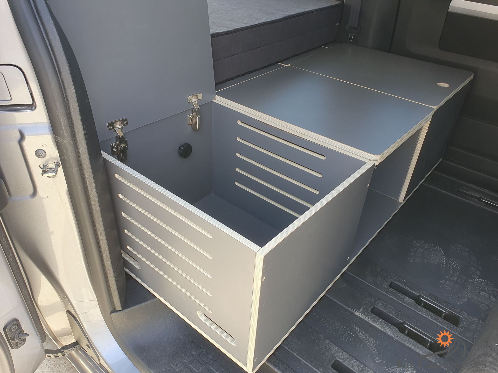 Los Modelos Kit Camper Plus tienen 41 cm de Alto y permiten utilizar la mesa en el interior de la furgoneta .