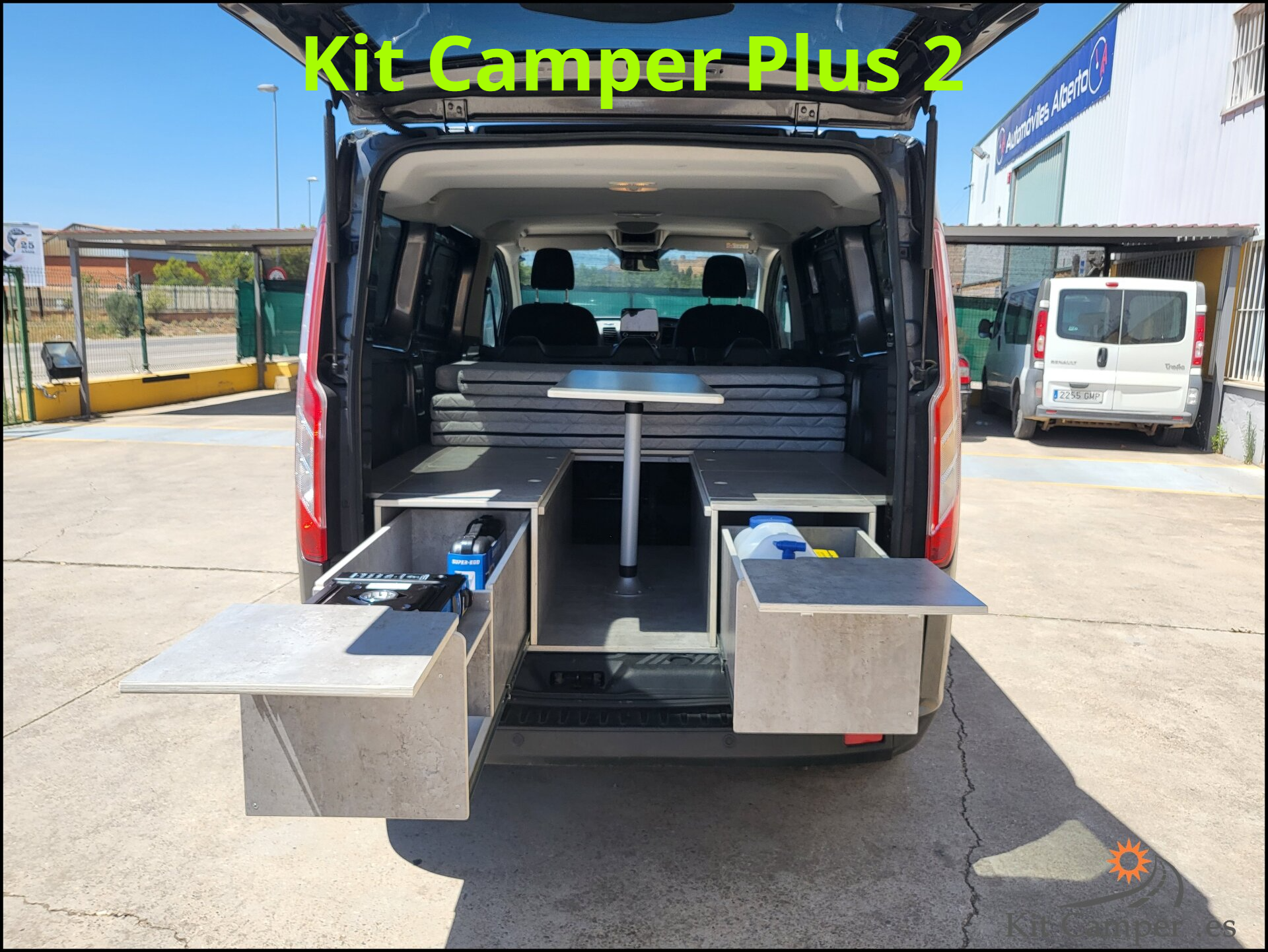 Ford Transit Custom equipada con nuestro KIT CAMPER PLUS con cama de 160x185 o 190 manteniendo la fila de asientos central.