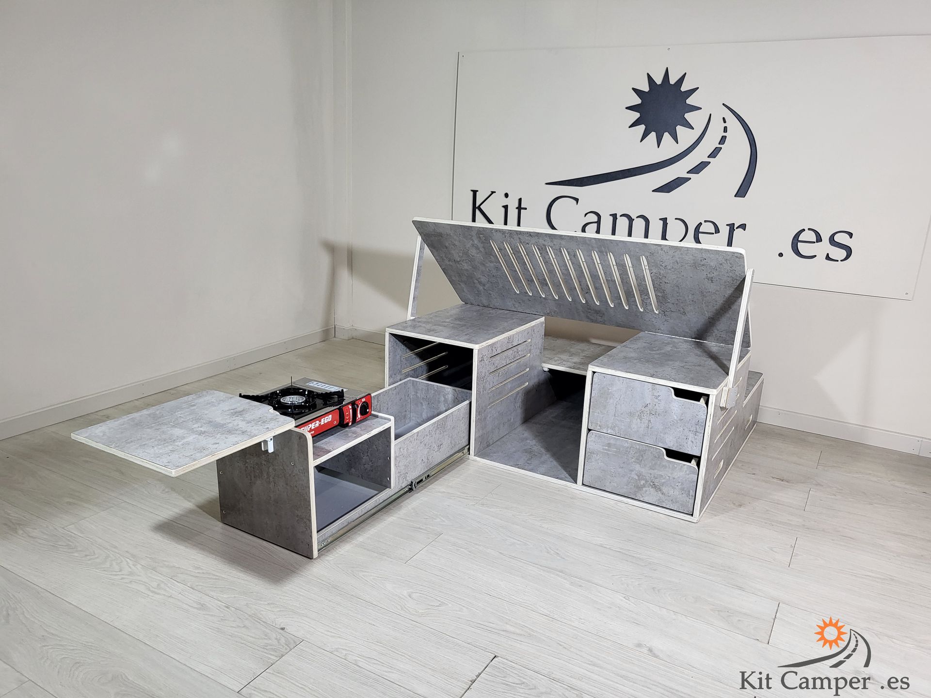 Mueble para almacenamiento con cajón para cocina, cajones almacenamiento , Mesa para exterior con trípode y respaldo abatible para prolongar la cama .