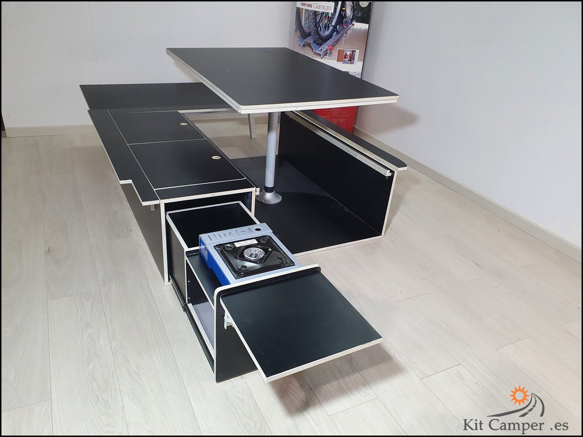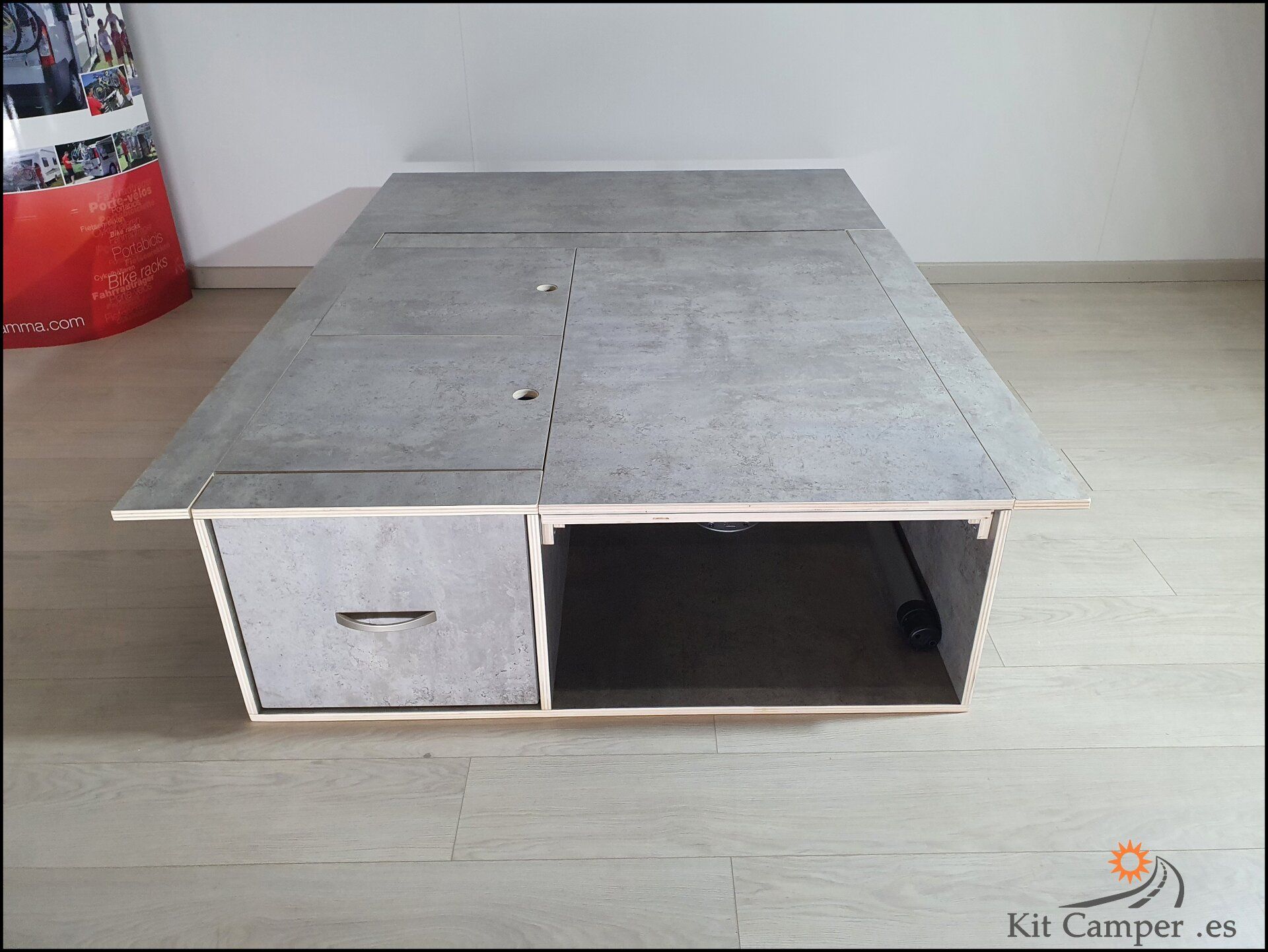 Dispone de 1 Cajón , 1 Arcon, Mesa de 120x65 y extensible para Camacon patas de apoyo . Cama de 140/150 x 185/190Furgonetas Compatibles : Trafic , vivaro, Talento, Primastar, T4, T5, Transporter, T6 , Vito, Viano, Expert, Jumpy , Proace , nv 200 y muchas mas.(Todas estas sin asientos traseros a no ser que sean de batalla larga)