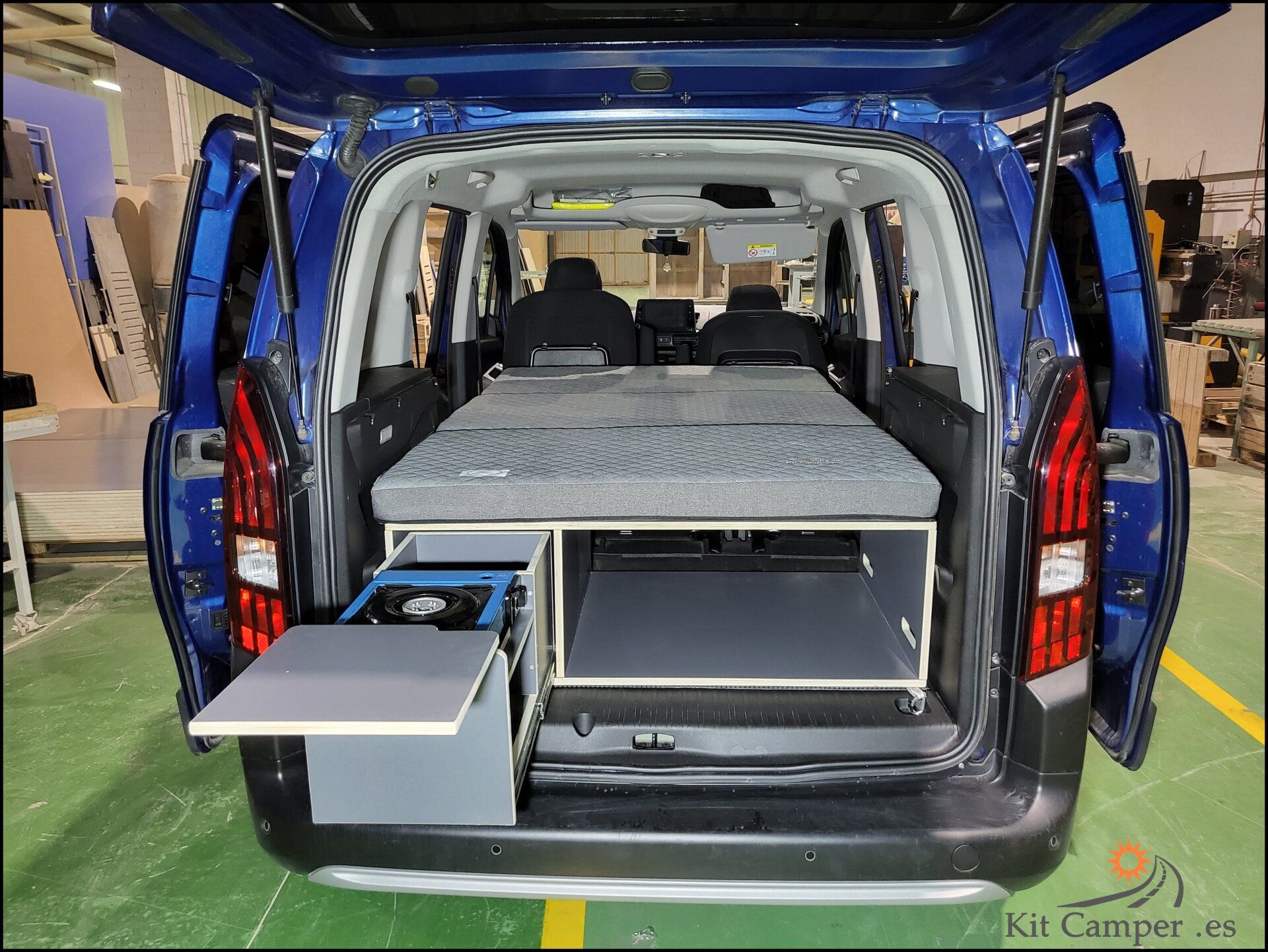 Furgonetas Compatibles:Partner, Berlingo, Caddy, Kangoo, Citan, Tourneo Connect, Doblo, Rifter, Talla MEste Modelo de camper le permite mantener los asientos traseros y dispone de 4 patas de apoyo para la cama.Medida de Cama aproximada de 115x180/190Precio : 554€+iva