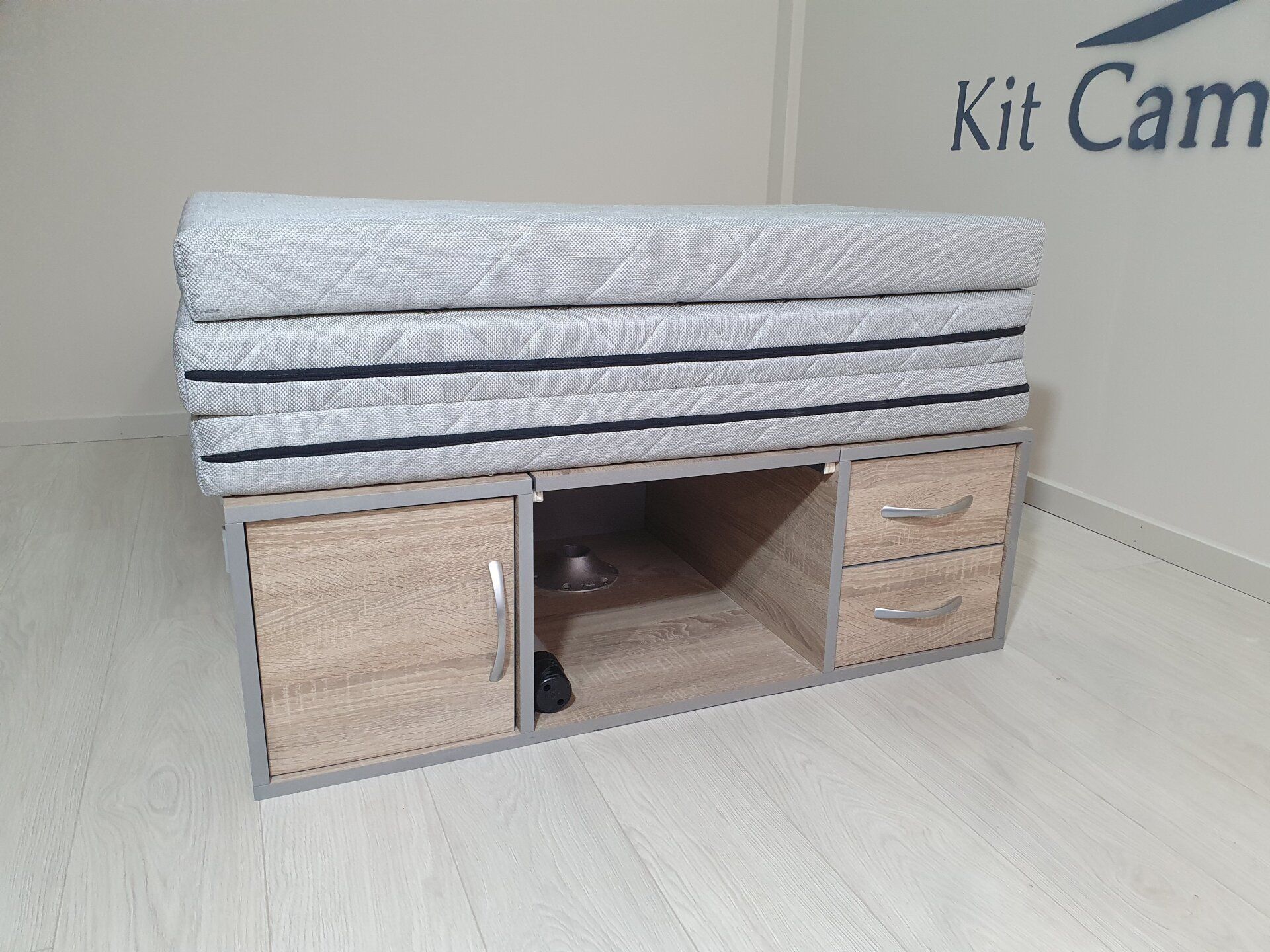 Furgonetas Compatibles:Partner, Berlingo, Caddy, Combo, Dokker, Kangoo, Citan, Tourneo Connect, Doblo, Rifter, todas estas de cualquier año. Talla MEste Modelo de camper le permite mantener los asientos traseros y dispone de 4 patas de apoyo para la cama.Medida de Cama aproximada de 115x180/190Precio : 710€ + iva