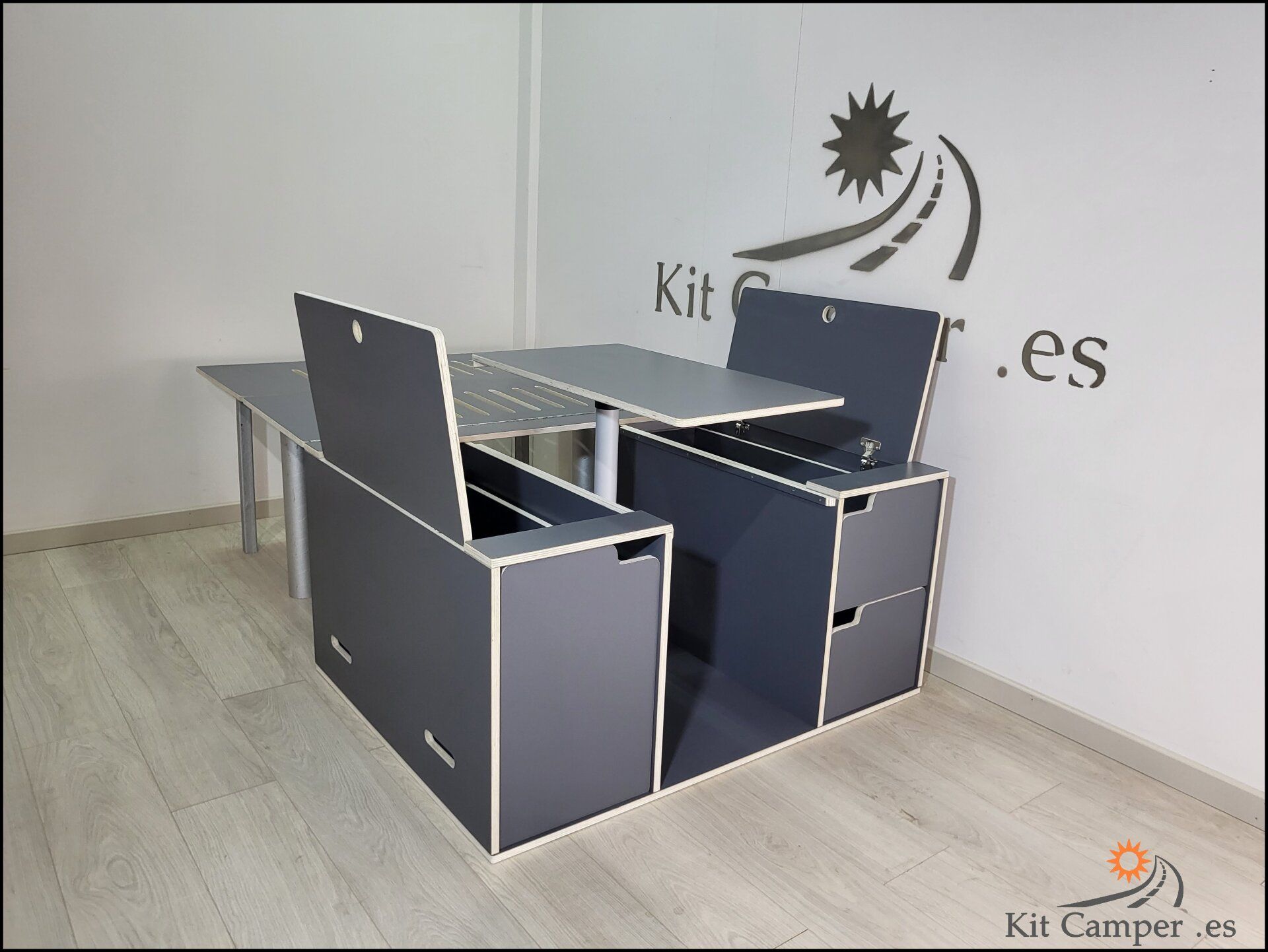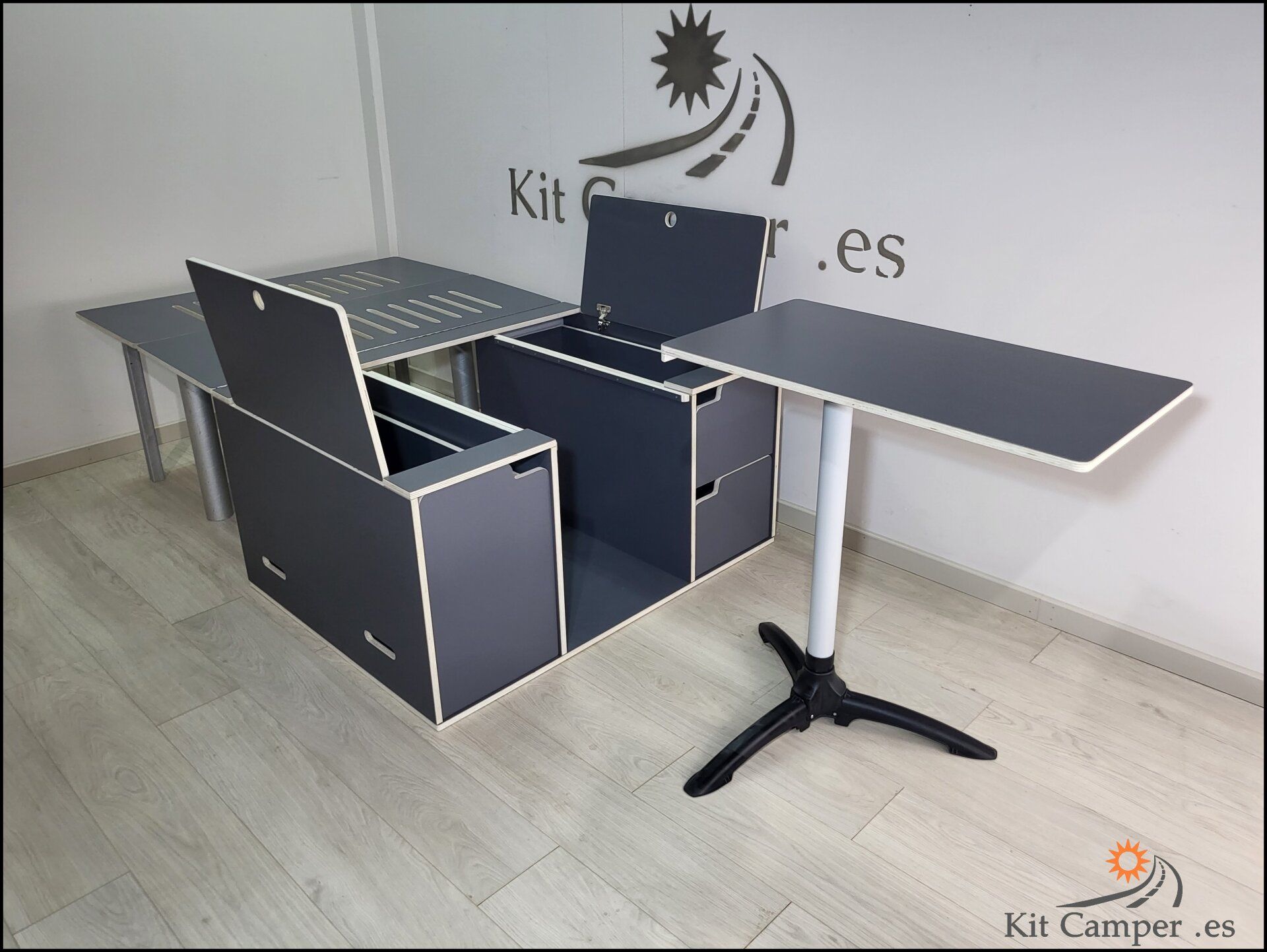 -1 Cajón adaptado para cocina izquierdo con mesita abatible + 1 cajón normal derecho con mesita abatible