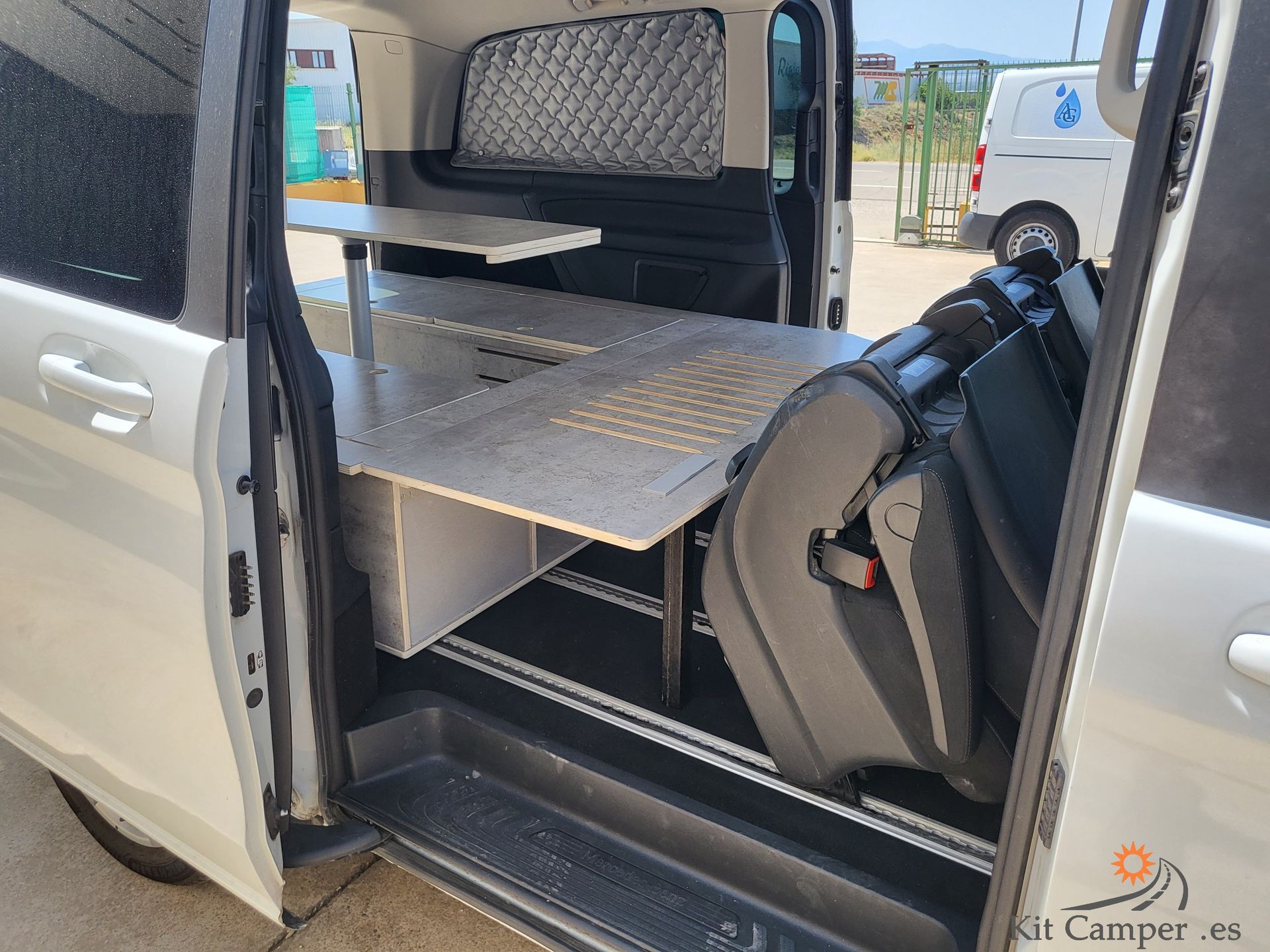 Para Mercede Clase V w447 Largas y Extralargas podemos equiparla con nuestros modelos Kit Camper Plus , Plus 2 y T30 y ademas podremos mantener la fila central de Asientos .